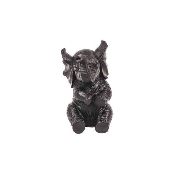 Met dit mooi en grappig beeldje van een baby olifant zwart, breng je een leuk en grappig accent aan in jouw interieur. Het beeldje is niet groot maar wel fijn en gedetailleerd met talloze geinige details zoals de vormgeving en de geinige blik van dit baby olifantje. Dit olifantje heeft iets weg van een circus olifantje. Het olifantje heeft er in elk geval zin in want het kijkt heel blij. Dit beeldje is de perfecte aanvulling op jouw andere dierenbeelden van goud, zwart of wit.