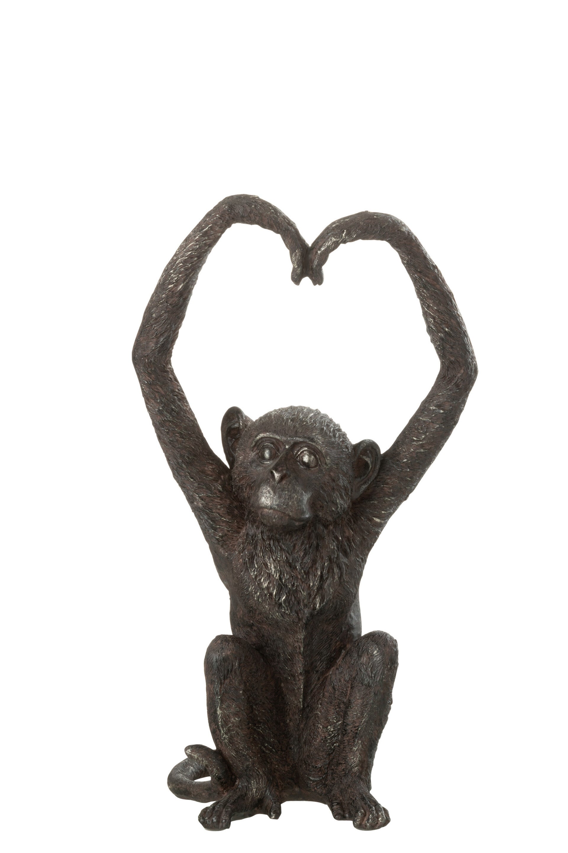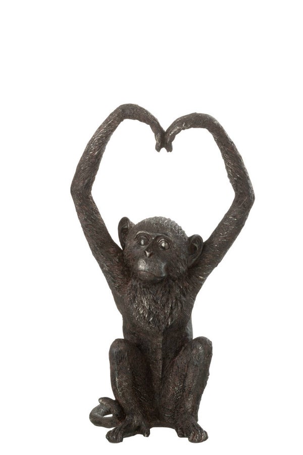 Beeld | Aap | Hart | J-Line | Bruin | Polyresin | Set, groot of klein | L: 33 cm, S: 22,5 cm