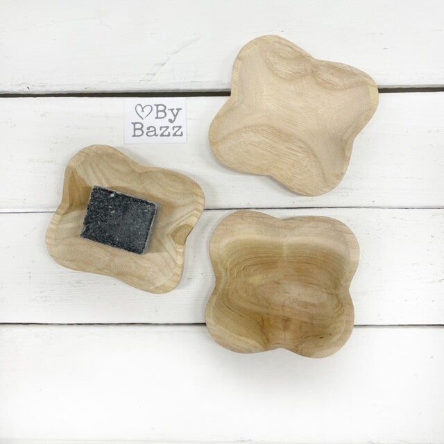 Dit prachtige houten schaaltje in klaver vorm is de perfecte ondergrond voor je favoriete amberblokje. Met zijn natuurlijke uitstraling en handgemaakte afwerking voegt dit schaaltje een sfeervol en warm detail toe aan je interieur.