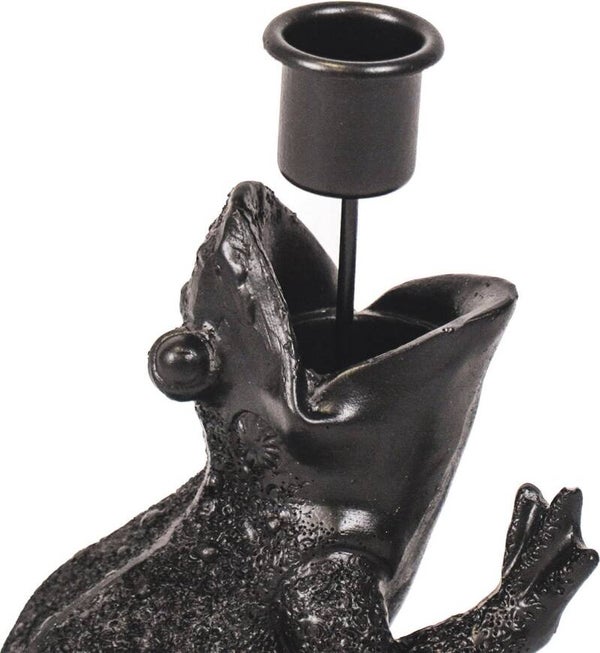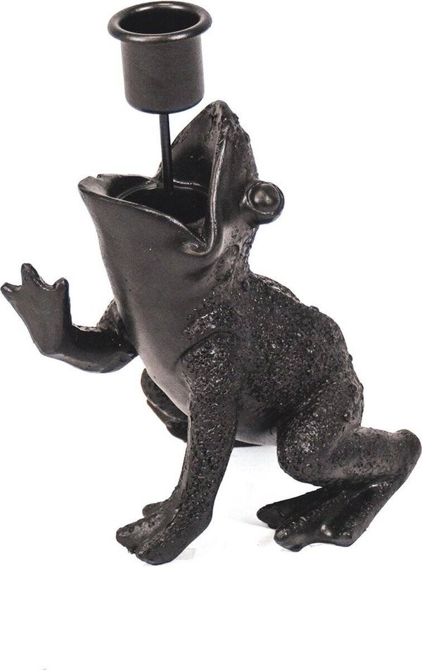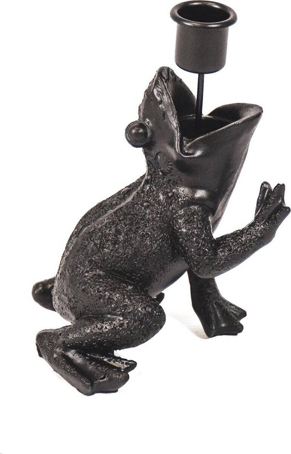 πΈ Zwarte Kikker Kandelaar – Stijlvolle Woondecoratie met Speelse Twist