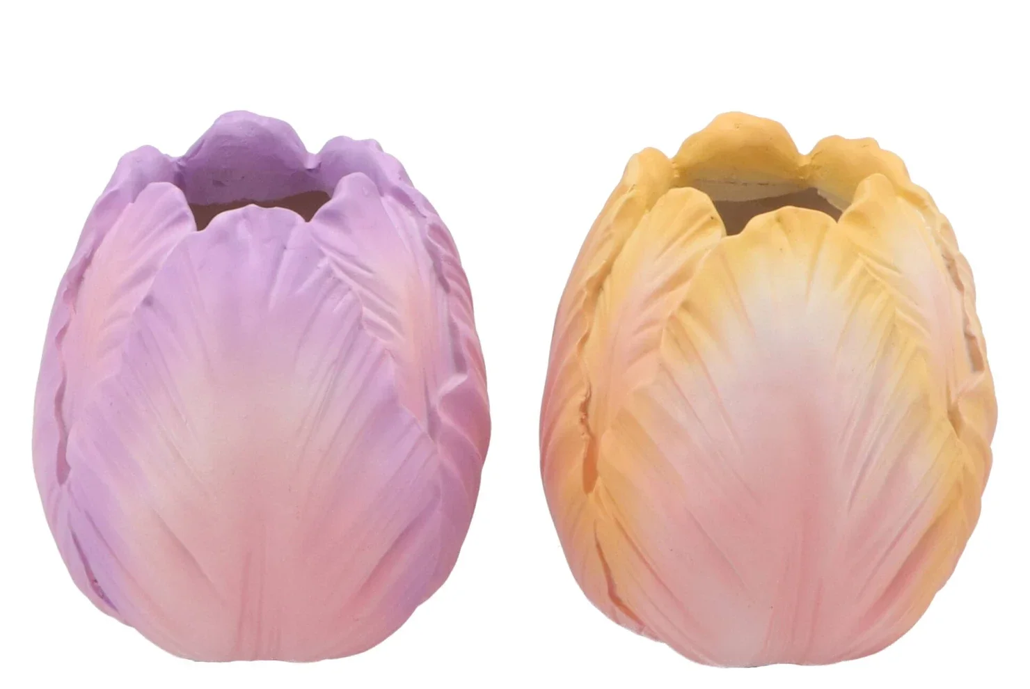 Deze nieuwe tulpenvazen gespoten in mooie two-tone kleuren staan zelfs zonder bloemen superleuk je woonkamer.