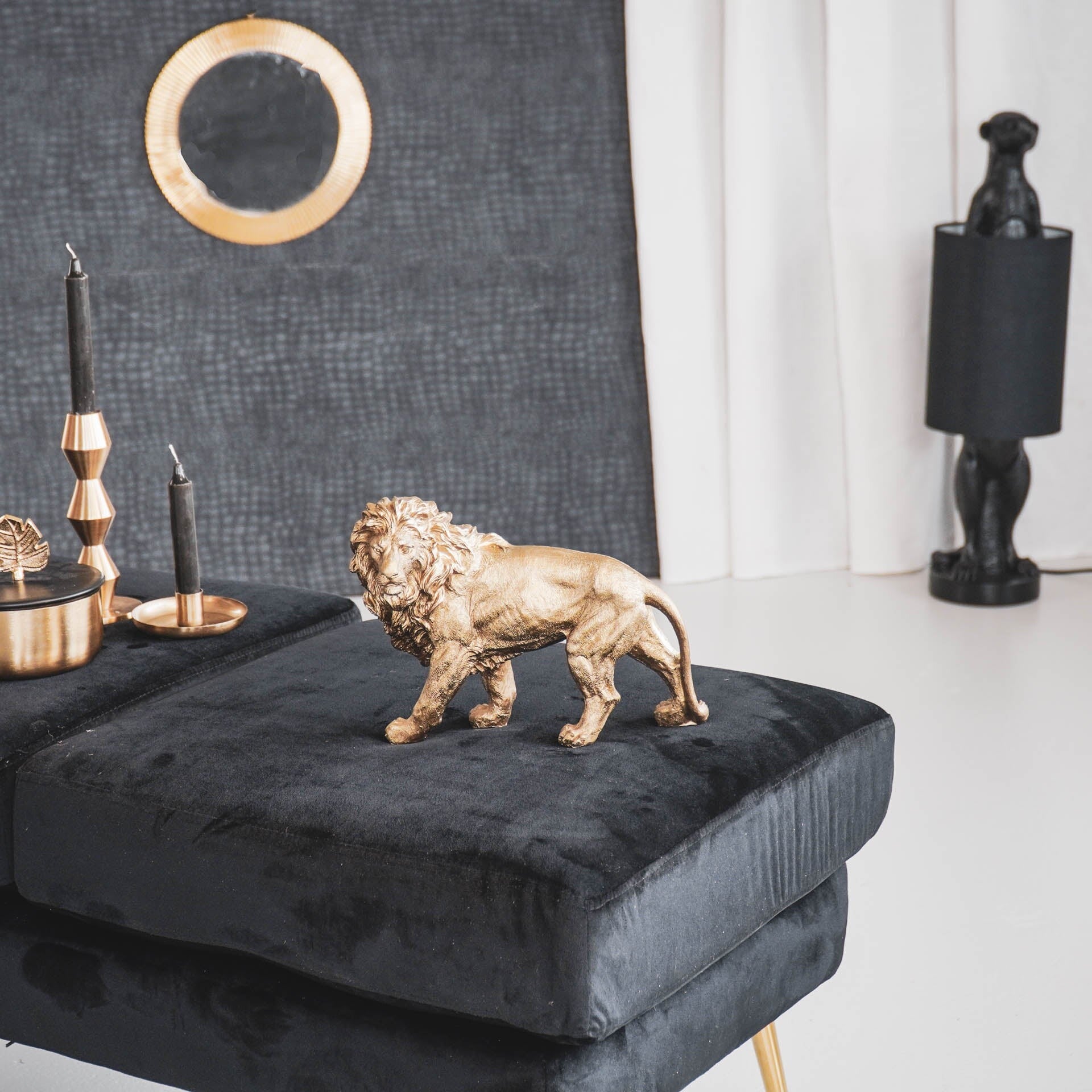 Een jungle interieur is hot! Dieren maken een interieur speels en zijn tegelijkertijd ook kunstobjecten. Dit leuke decoratieve beeld van een staande gouden leeuw is een echte eyecatcher in huis. Het beeld is een mooie woonaccessoire voor jouw inrichting. Elk interieur is geschikt voor dit mooie beeld. Het gouden leeuwenbeeld is voorzien van mooie details en 33cm lang.