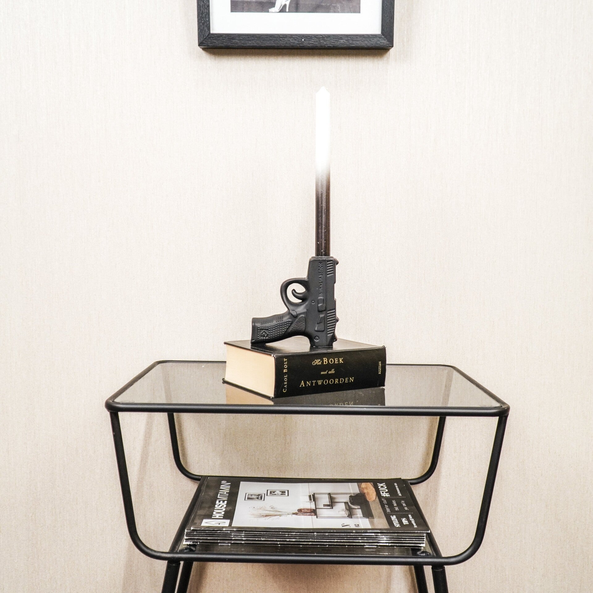 Zwarte Pistool Kandelaar – Unieke Woondecoratie | Housevitamin