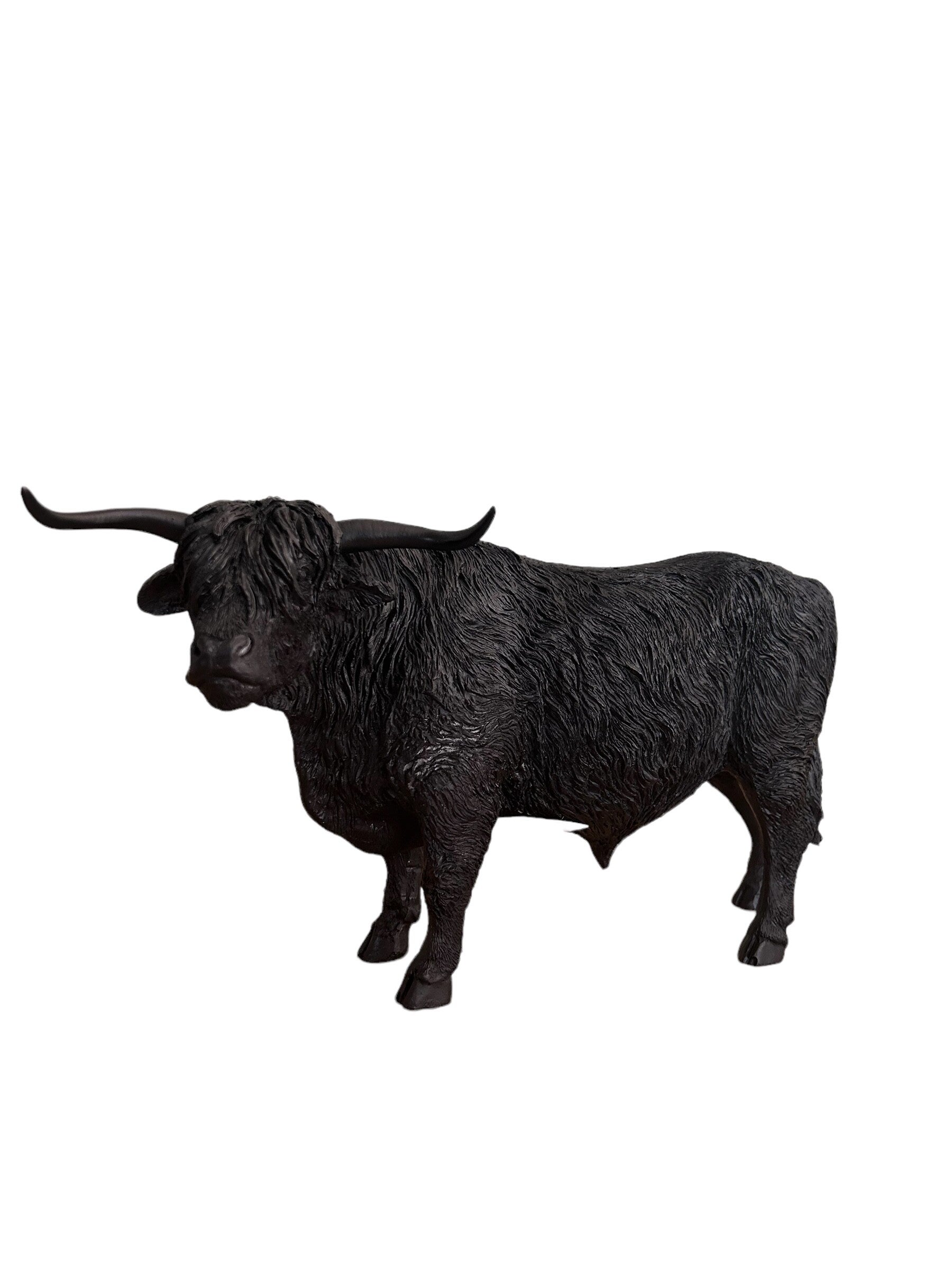 Dankzij de fijne details, zoals de kenmerkende kop met imposante horens, is dit Schotse Hooglander beeld een echte eyecatcher. De diepzwarte kleur geeft het een moderne en stoere uitstraling, waardoor het moeiteloos past in landelijke, industriële en moderne interieurs.