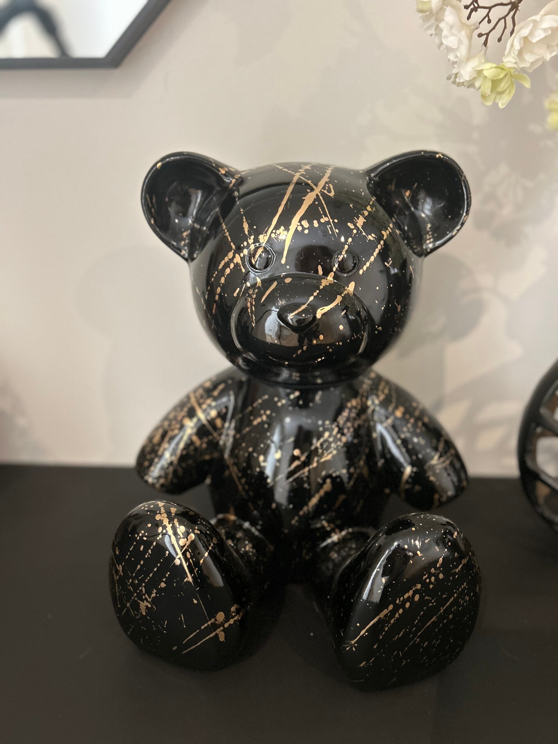 Beeld | Beer | Teddy | Zwart | Gouden Splash | Zittend | 34cm |