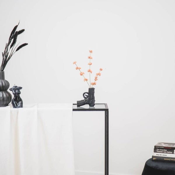 Breng een dosis stijl aan in je interieur met deze unieke pistool vaas van Housevitamin. Met zijn gedurfde ontwerp en stoere zwarte afwerking is deze pistool vaas een echt statement stuk.