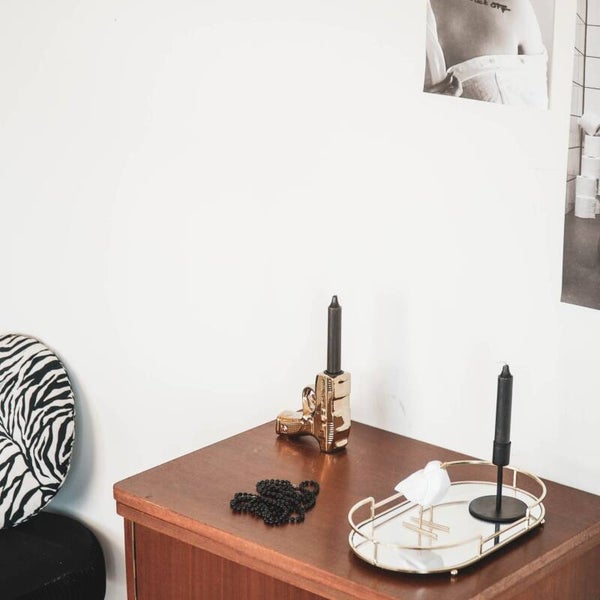 Breng een dosis stijl aan in je interieur met deze unieke pistool kandelaar van Housevitamin. Met zijn gedurfde ontwerp en mooie gouden afwerking is deze pistool kandelaar een echt statement stuk.