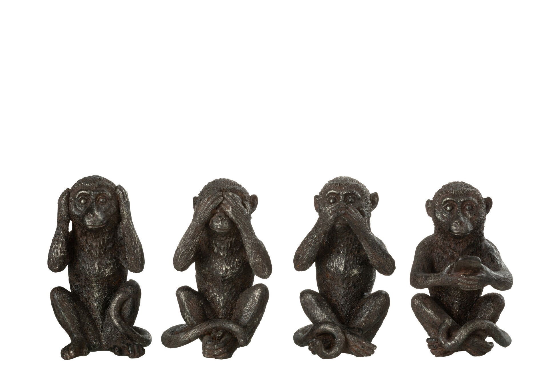 Of je nu kiest voor één beeldje of de complete set, deze apen brengen gegarandeerd karakter en stijl in jouw woonruimte.