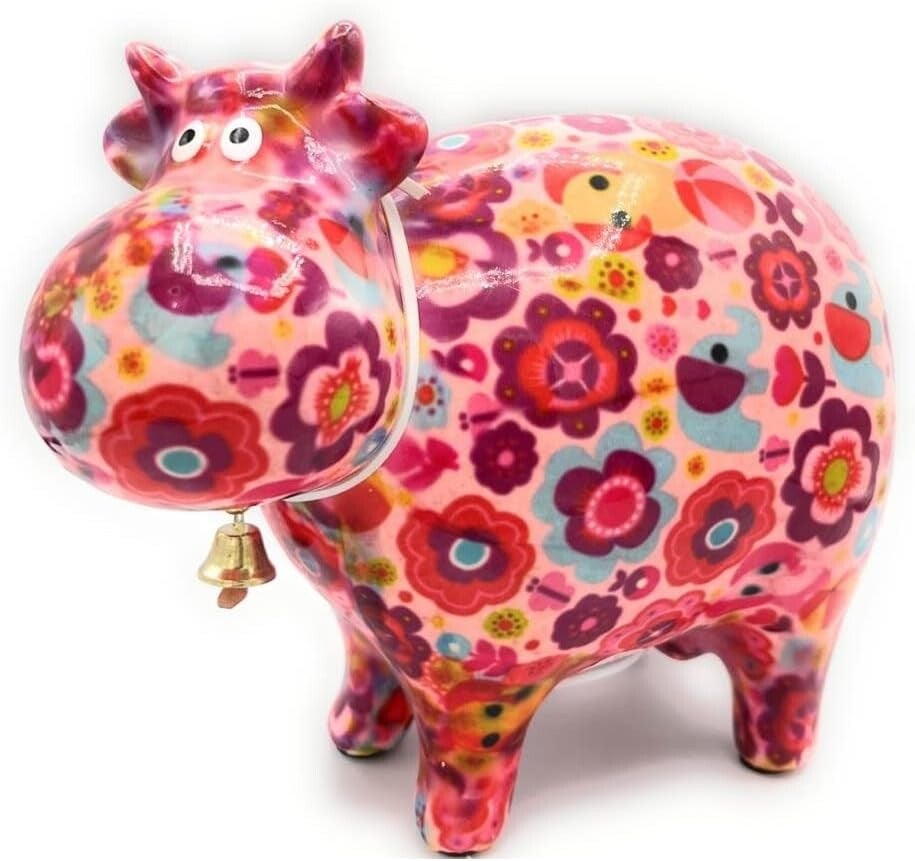 Met deze spaarpot koe Bella van Pomme Pidou is sparen een vrolijke bezigheid. Het merk Pomme Pidou staat bekend om haar creativiteit, vrolijkheid van de beeldjes en het heldere kleurgebruik. Zo ook deze mooie spaarpot. Prachtig roze met als thema "Pink Elephant Parade" en een prachtig vormgegeven koeien spaarpot. De koe Bella spaarpot is met de hand geschilderd, dus uniek. Deze koeien spaarpot tovert elke dag opnieuw een glimlach op je gezicht en brengt kleur in je interieur. Ideaal als decoratie!