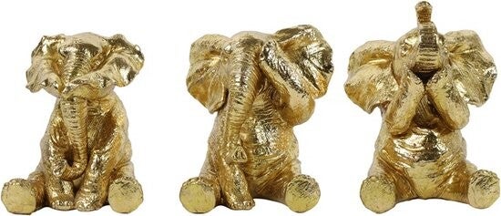 Beeld | Horen zien & zwijgen | Olifanten | Countryfield | Goud | 11x10,5x14cm