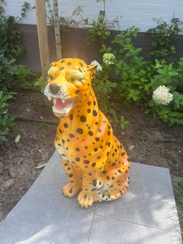 Luipaard- en panterliefhebbers opgelet! Dit extra grote beeld van een zittende luipaard is dé perfecte toevoeging aan je interieur. Met een indrukwekkende hoogte van 82 cm is dit gracieuze en energieke luipaard beeld een absolute blikvanger.