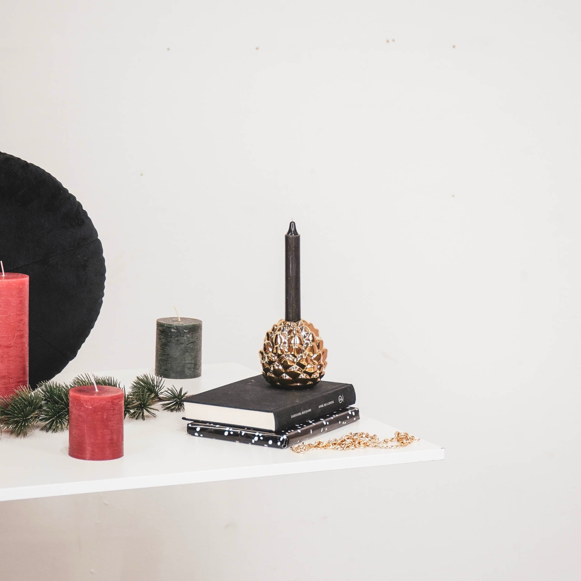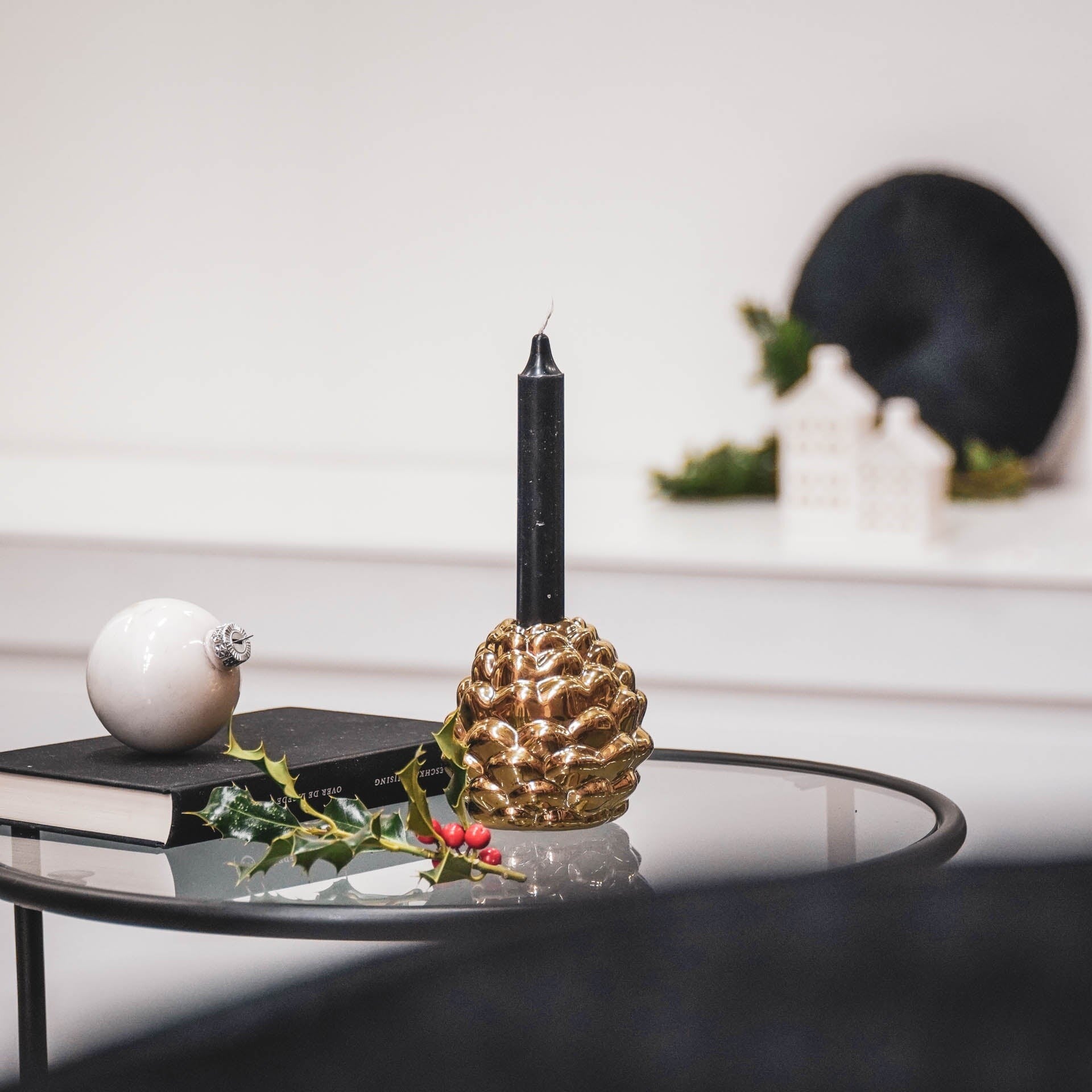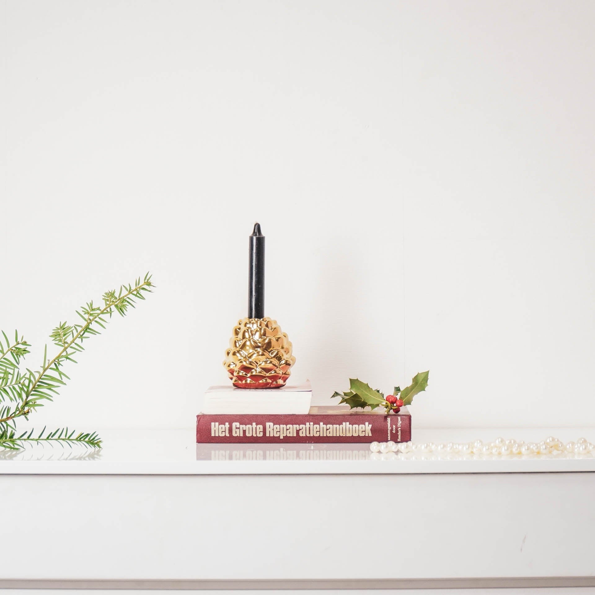 Kaarsenhouder | Kandelaar | Dennenappel | Goud | Housevitamin | Keramiek | 9x8,5x8,5cm