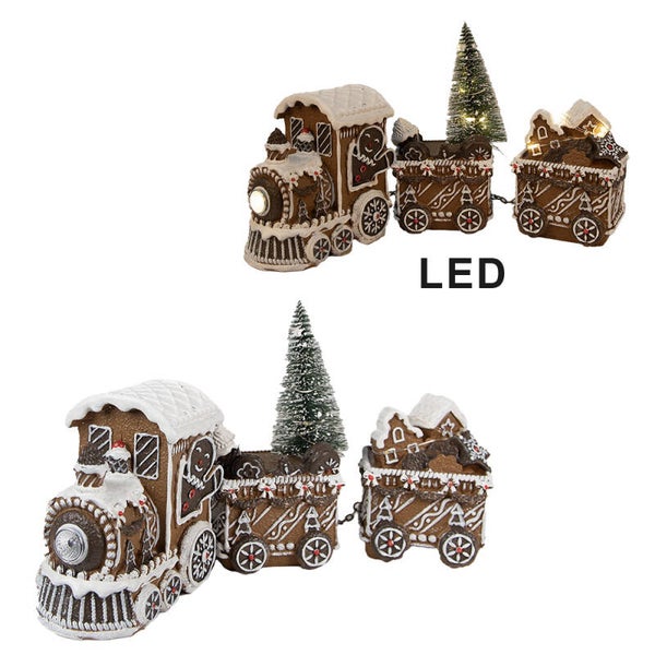 Kerstdecoratie | Kersttrein | LED-verlichting | Gingerbread | Clayre & Eef | 30x8x16cm