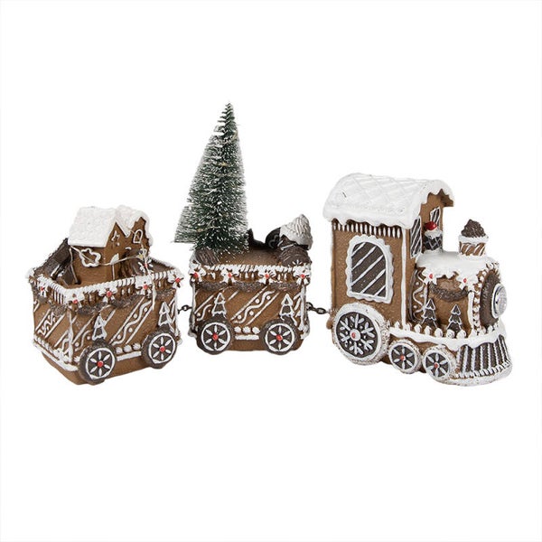 Laat je kerstdecoratie opvallen met deze sfeervolle Gingerbread Kersttrein van Clayre & Eef! De kersttrein is gedetailleerd in een vrolijk gingerbread-thema en voorzien van led-verlichting, waardoor hij warm oplicht en een feestelijke sfeer brengt. Met zijn 30x8x16cm is deze trein ideaal om neer te zetten op een tafel, dressoir of vensterbank voor een betoverende kerstuitstraling.