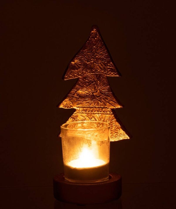 Theelichthouder | Kerstboom | Goud | J-line | 9,5x8,5x17,5cm