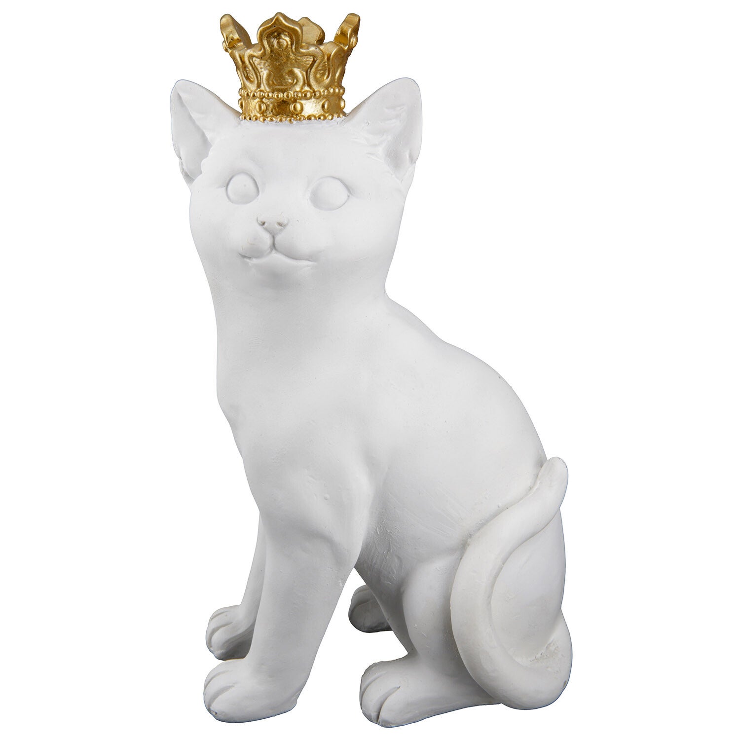 Geef jouw interieur een koninklijke uitstraling met dit stijlvolle kattenbeeld! Verkrijgbaar in zwart of wit, en afgewerkt met een prachtig gouden kroontje, straalt dit unieke dierenbeeld luxe en elegantie uit. Gemaakt van stevig polyresin, is dit beeld duurzaam en gedetailleerd, waardoor het perfect past in een modern interieur met dieren.