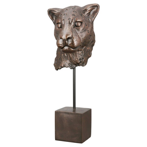 Breng een vleugje wilde elegantie in jouw interieur met dit indrukwekkende luipaardbeeld. Het gedetailleerde ontwerp van het luipaardhoofd, uitgevoerd in een antieke bronslook, straalt kracht en verfijning uit. De stevige kunstharsconstructie maakt dit sculptuur duurzaam en geschikt als opvallende decoratie.