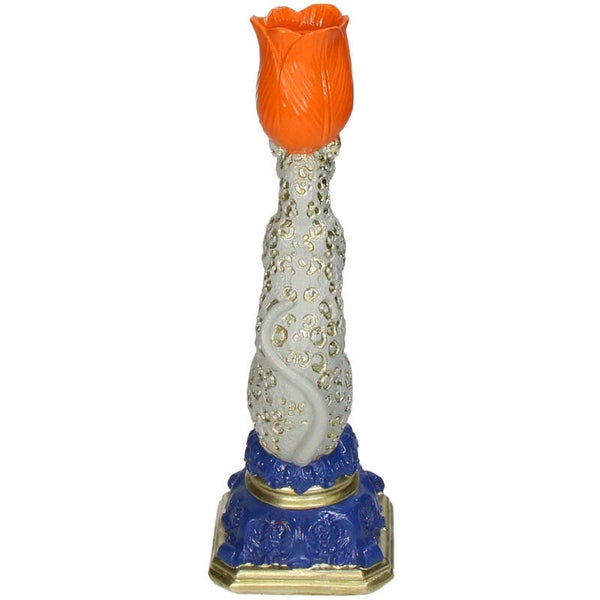 Kandelaar | Luipaard | Tulp | Blauw | Oranje | Wit | Goud | Polyresin | 9x8,5x26cm