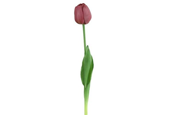 Breng een stijlvolle en kleurrijke sfeer in huis met deze paarse tulp. Combineer meerdere bloemen uit de serie of laat deze kunstbloem solo stralen in een prachtige vaas.
