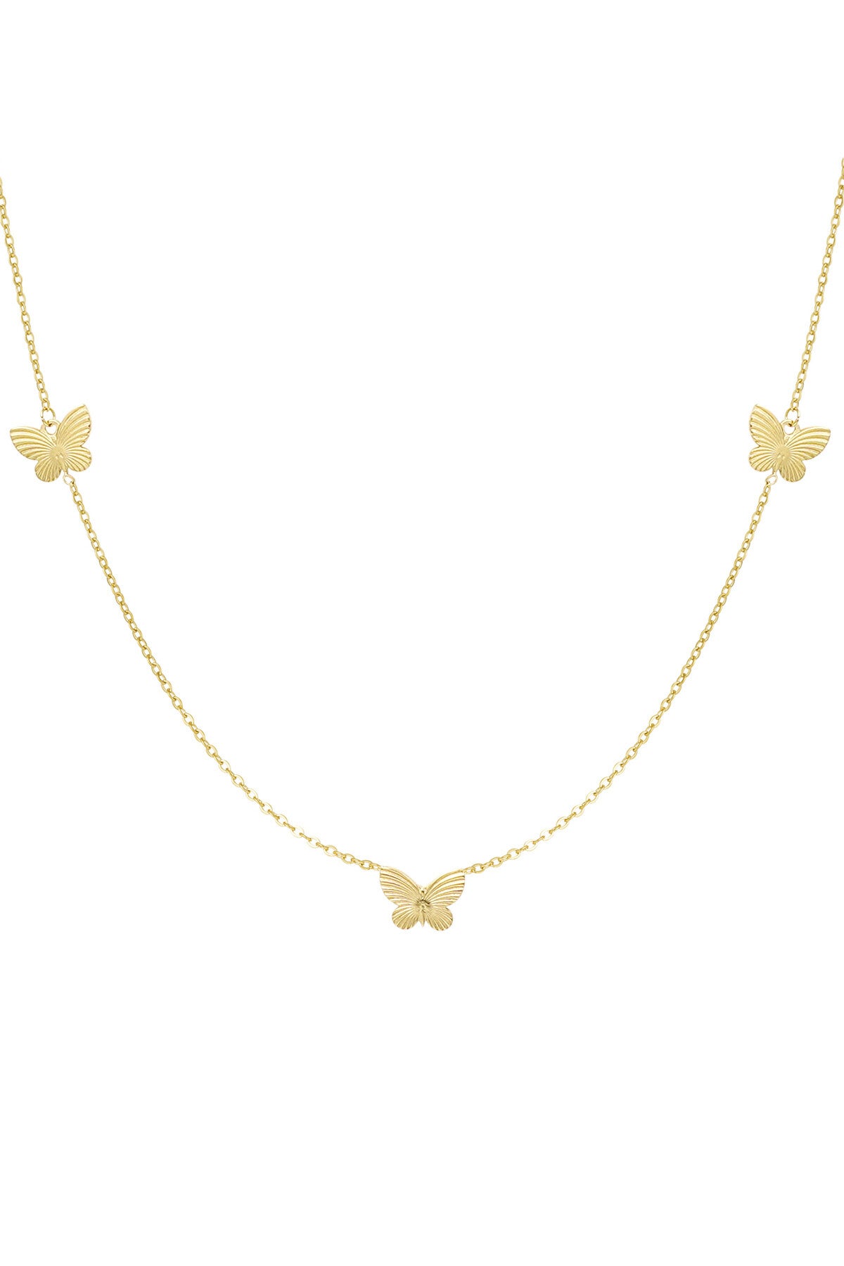 Ketting | Vlinders | Lang | Goudkleurig Stainless Steel | 90+5 cm