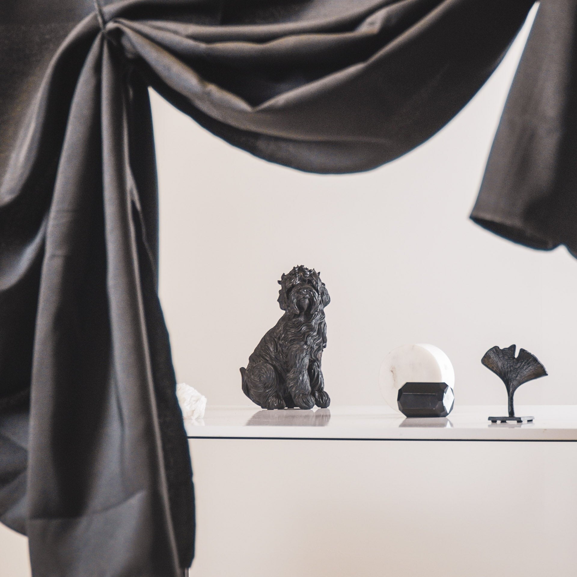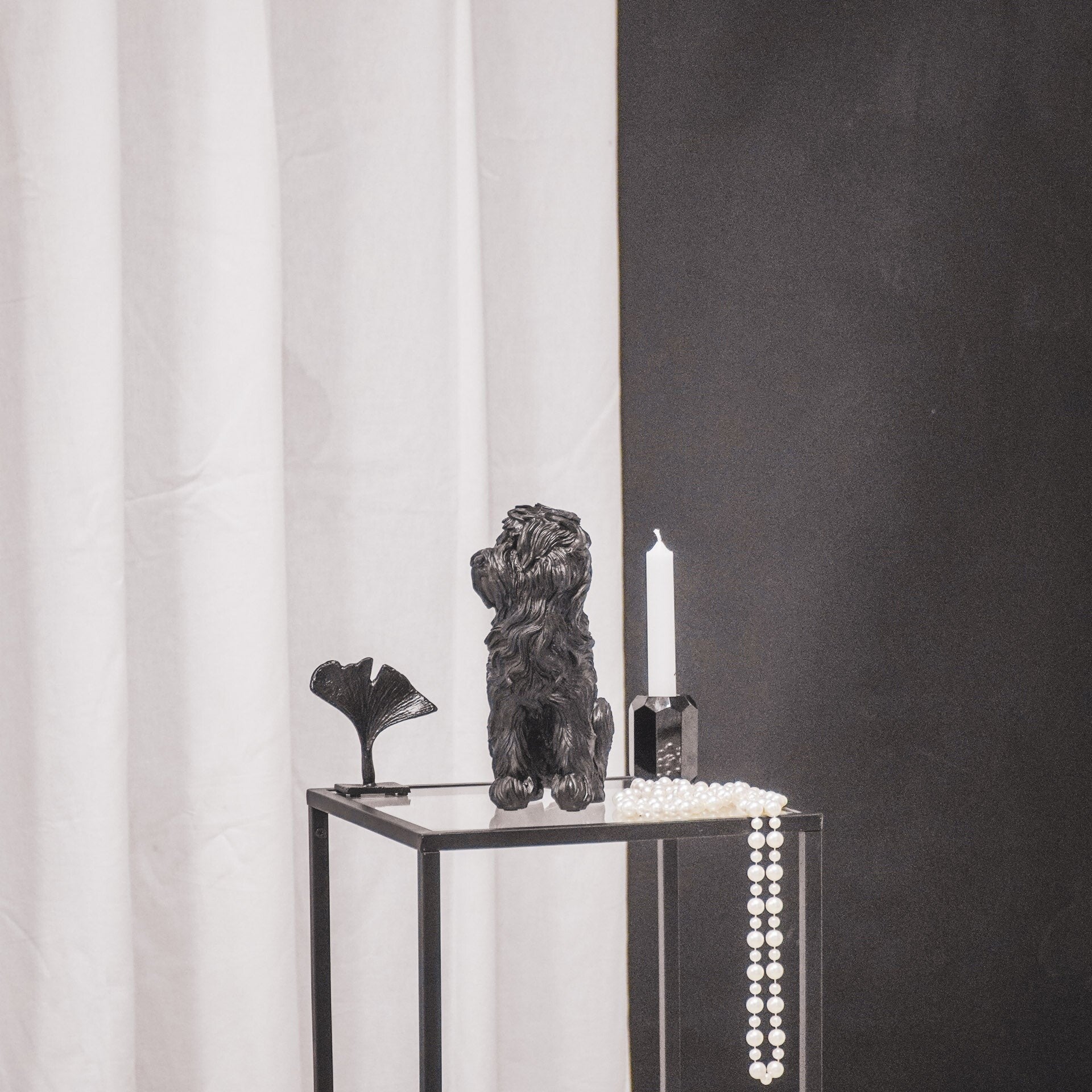 - Elegant design: Het matzwarte Labradoodle beeld past in elk interieur, van modern tot klassiek.