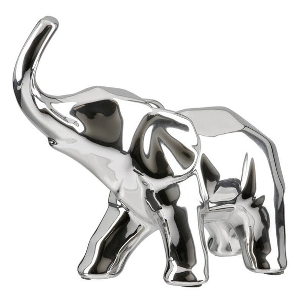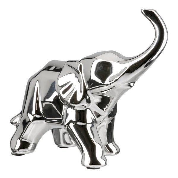 Breng een vleugje elegantie in je interieur met dit schitterende zilveren olifantenbeeld. Dit dierenbeeld woondecoratie is perfect voor liefhebbers van stijlvolle en moderne accenten. De prachtige, glanzende afwerking van dit keramische sculptuur zorgt voor een luxe uitstraling en maakt het een echte blikvanger in elke ruimte.