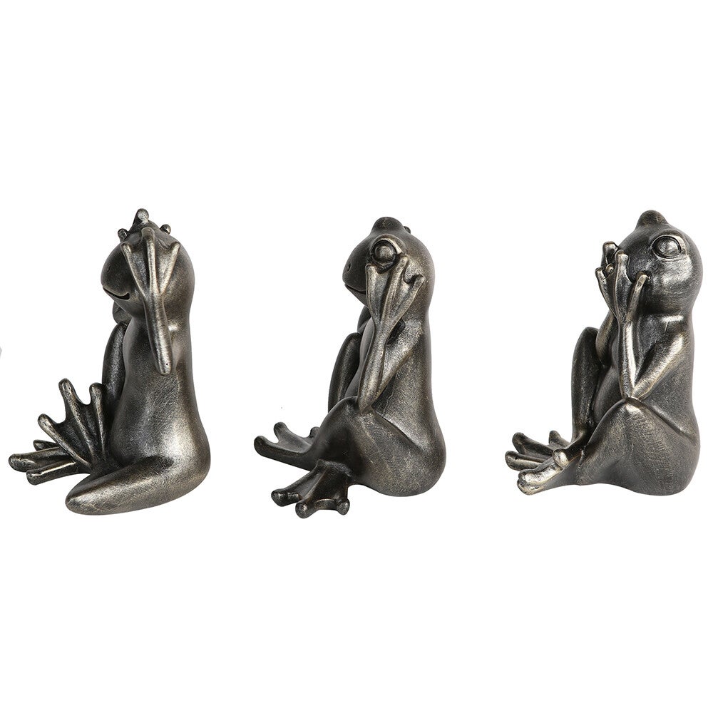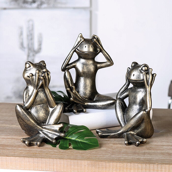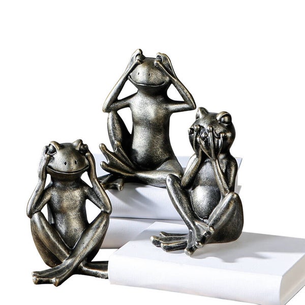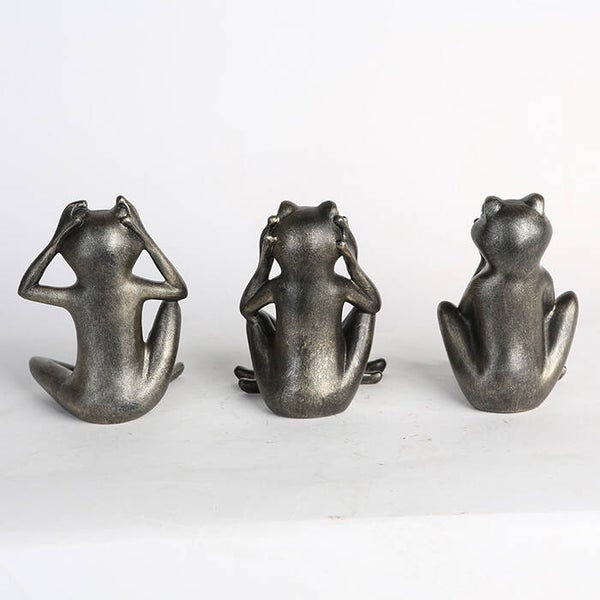 Set van Drie Antieke Kikkerbeelden – Wijsheid in Stijlvolle Woondecoratie