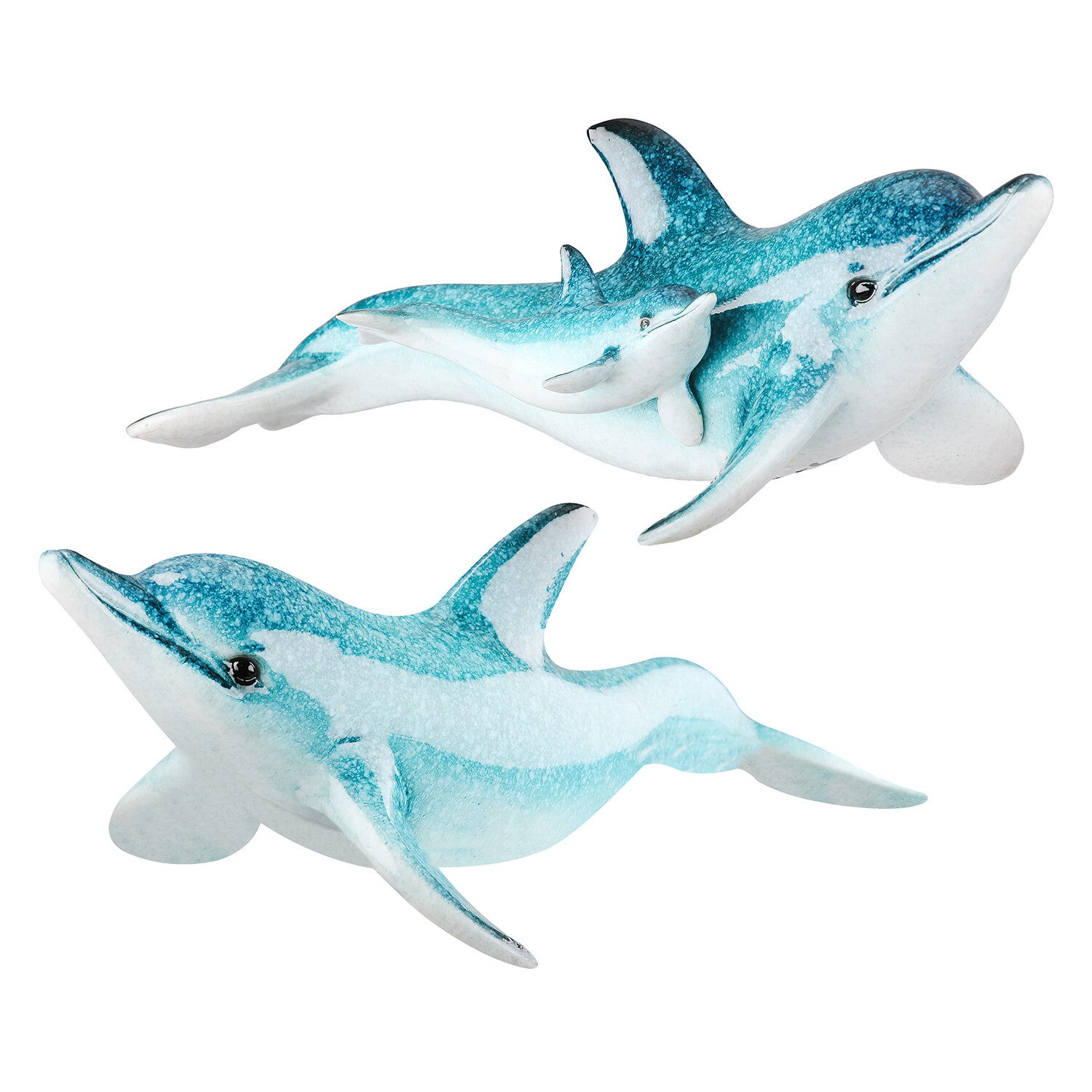 Polyresin Dolfijn Beelden – Luxe Maritieme Decoratie | 10 x 19,5 cm & 9,5 x 20 cm