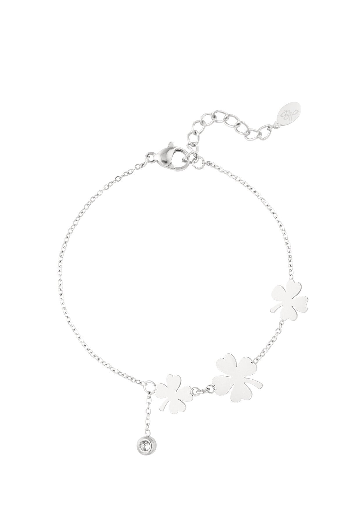 Breng een beetje geluk met je mee met deze zilveren klavertjevier armband van stainless steel! β¨ Subtiel, stijlvol en betekenisvol – deze armband past bij elke outfit én elke gelegenheid. De combinatie van drie klavertjes en een klein steentje maakt het een speels én elegant geheel.