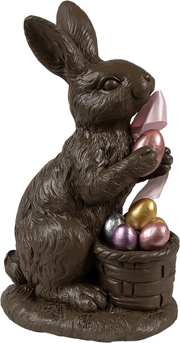 π Paashaas Beeldje met Mandje – Clayre & Eef | 22 cm Hoog | Decoratief Polyresin Beeldje voor Pasen