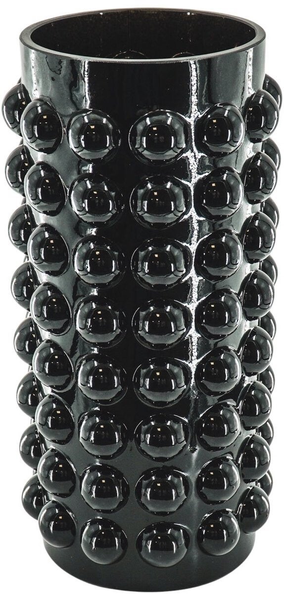 Glazen Vaas Zwart – Uniek Design met Bolletjesstructuur